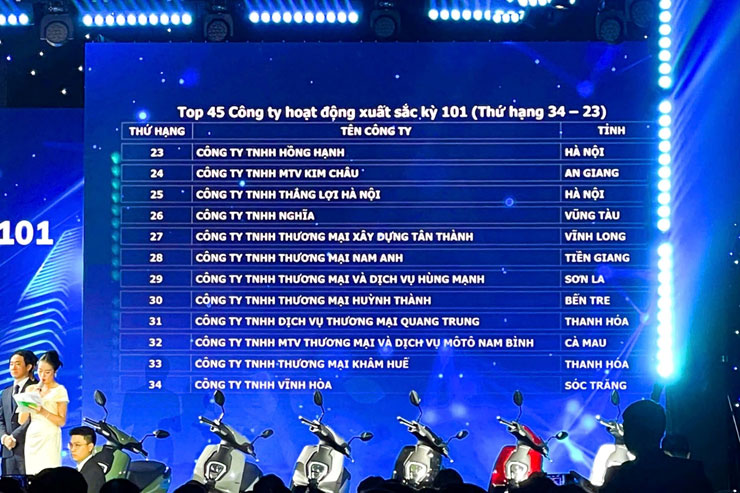 Hệ thống xe máy Nam Bình vinh dự đạt TOP 45 công ty hoạt động xuất sắc 2024 - 2025
