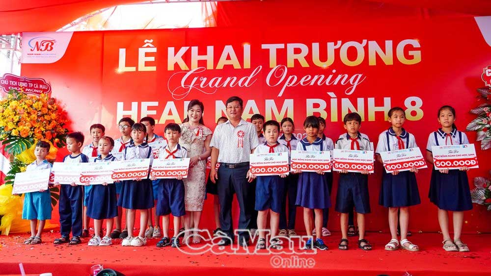 Nghi thức cắt băng khai trương HEAD Nam Bình 8, tại địa chỉ 133-135 Nguyễn Tất Thành, Phường 8, TP Cà Mau.