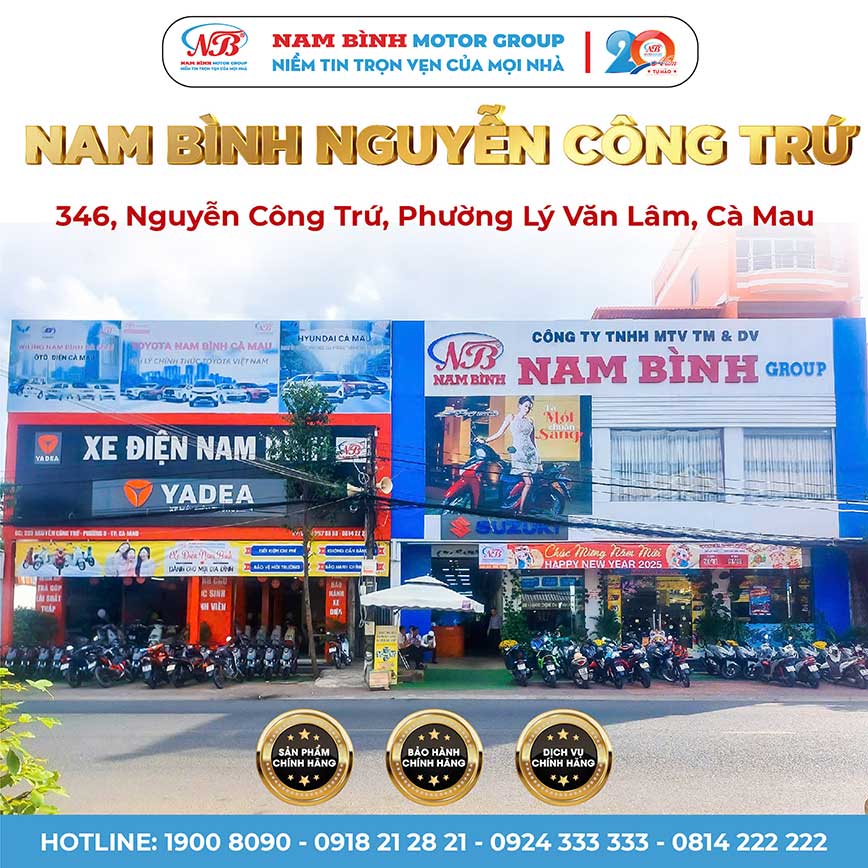 Công ty TNHH MTV TM & DV Nam Bình - Đơn vị tiên phong và uy tín hàng đầu trong lĩnh vực phân phối xe máy, xe ô tô, bất động sản và dịch vụ văn phòng tại khu vực Cà Mau – An Giang.