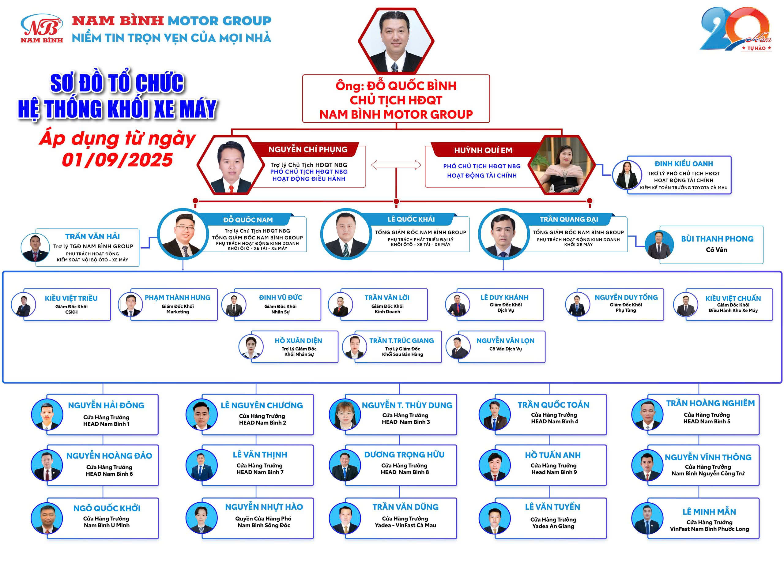 Với tầm nhìn chiến lược và sự dẫn dắt của Ông Đỗ Quốc Bình, Chủ tịch Hội đồng quản trị, Nam Bình Motor Group đã khẳng định vị thế vững chắc sau gần hai thập kỷ hoạt động. Được thành lập vào tháng 12 năm 2005, từ một cửa hàng xe máy nhỏ, Nam Bình đã phát triển mạnh mẽ thành một hệ thống đa ngành với mạng lưới rộng khắp tại Cà Mau – An Giang.